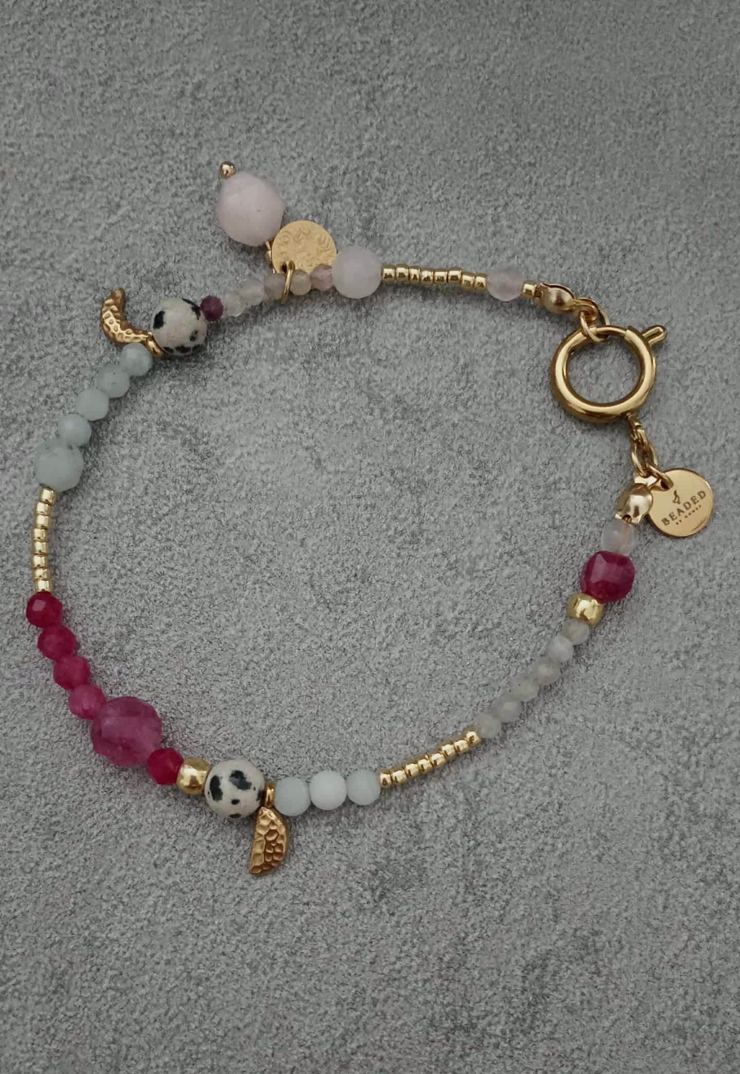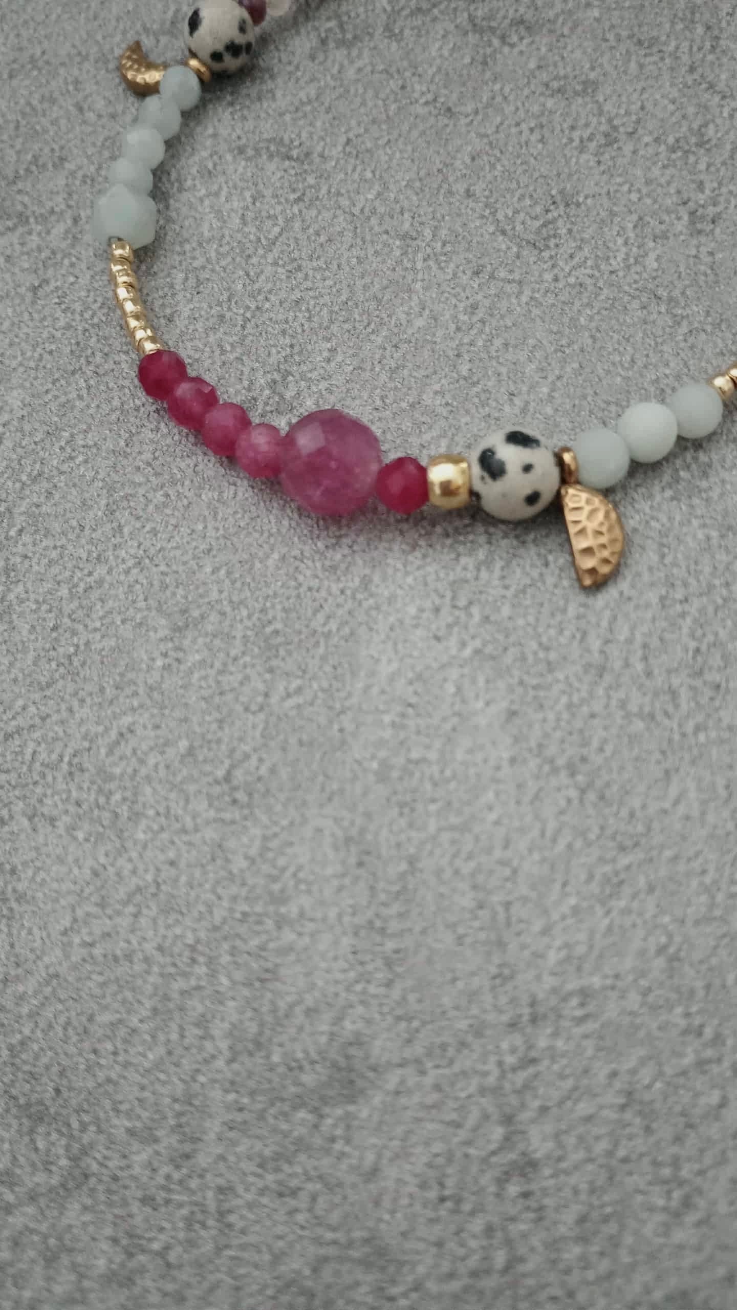 nº3 - a cool one. A vibrant mix of rose quartz, pink tourmaline, labradorite, amazonite, morganite and dalmatian jasper - balancing soothing, uplifting, and grounding energies